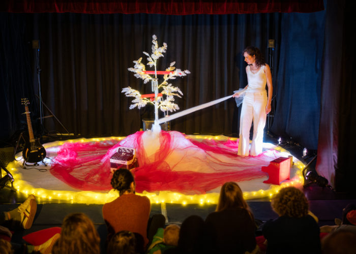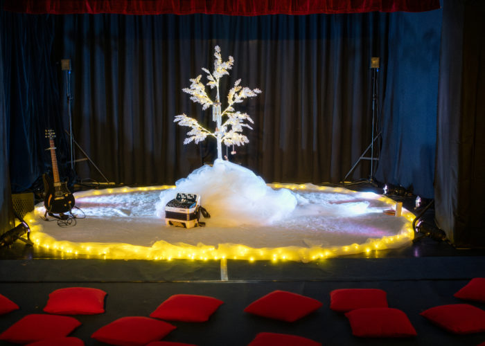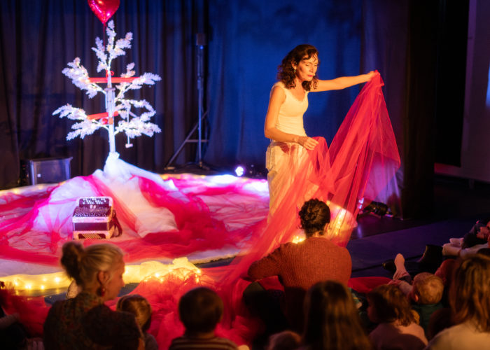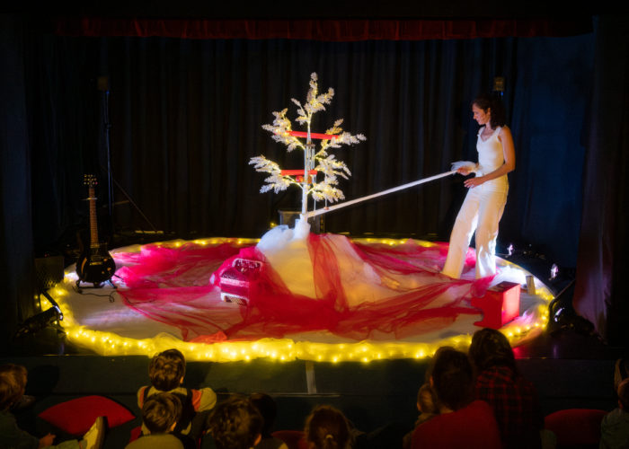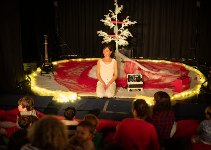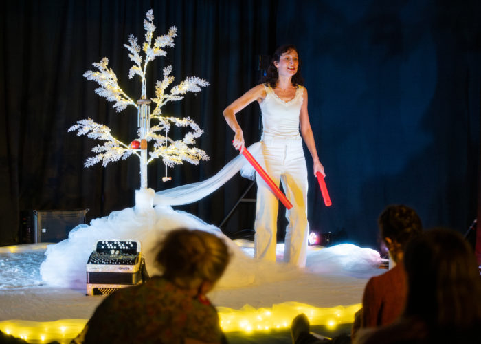 Cette proposition de la Cie Comptoirs du Rêve s'adresse plus particulièrement aux tout-petits, et peut aussi s'adapter aux petits espaces (crèches, relais petite enfance, etc.) avec de petites jauges.