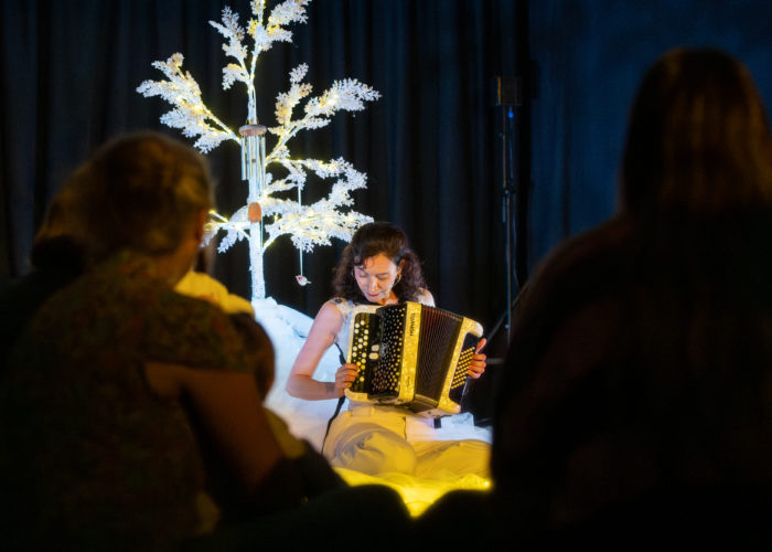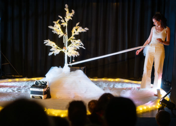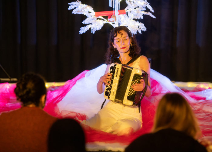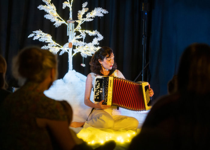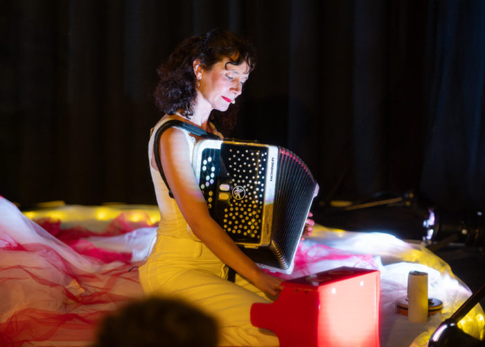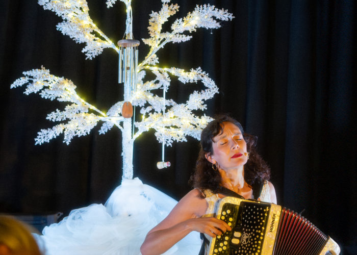 symbolisent une transformation rythmée par la voix de la musicienne, son accordéon, sa guitare et son petit piano.