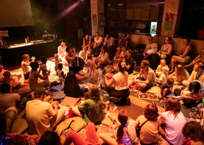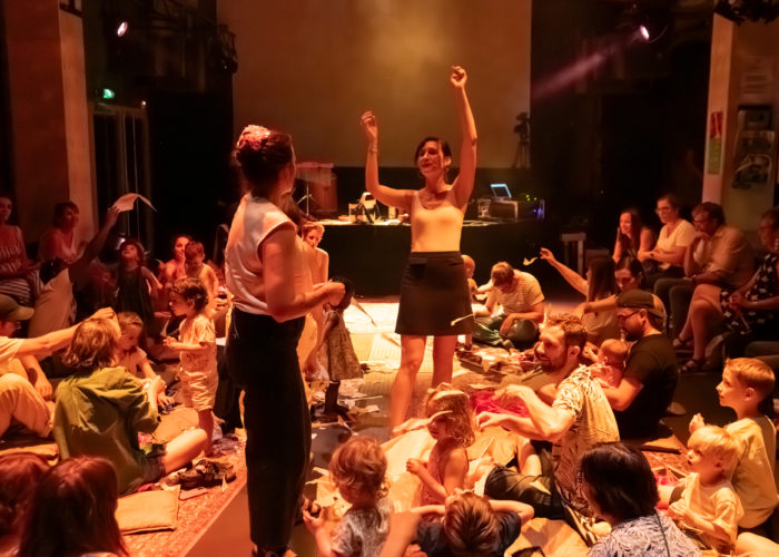 Les berceuses, souvent rituelles de l’endormissement, amènent douceur, apaisement et ouvrent à une autre sensibilité chez le petit enfant. C’est aussi la transition vers l’acceptation de la séparation avec la mère. Les berceuses renforcent le lien affectif entre parent et enfant Elles préparent à l’apprentissage de la langue maternelle Elles éveillent l’oreille aux langues étrangères Elles préparent à la lecture Elles structurent la journée du bébé Elles développent l’oreille musicale Elles stimulent la mémoire, l’attention et la concentration Cf Article « Pourquoi les berceuses sont-elles si bénéfiques pour les bébés ? » Suzana Kubik Les enfants, dans le public, découvrent leurs mères autrement, sorties du contexte familial, qui livrent des histoires à travers une autre expression que celle du langage parlé : l’expression artistique. C’est le corps,la voix et leur créativité qu’ils découvrent sur scène. Ce moment que les mères offrent aux enfants ouvre à l’altruisme. Ils découvrent la diversité du monde à travers des rythmes différents, des mélodies venues d’ailleurs. C’est une façon de se révéler, se confier différemment devant leurs enfants. La transmission demeure.